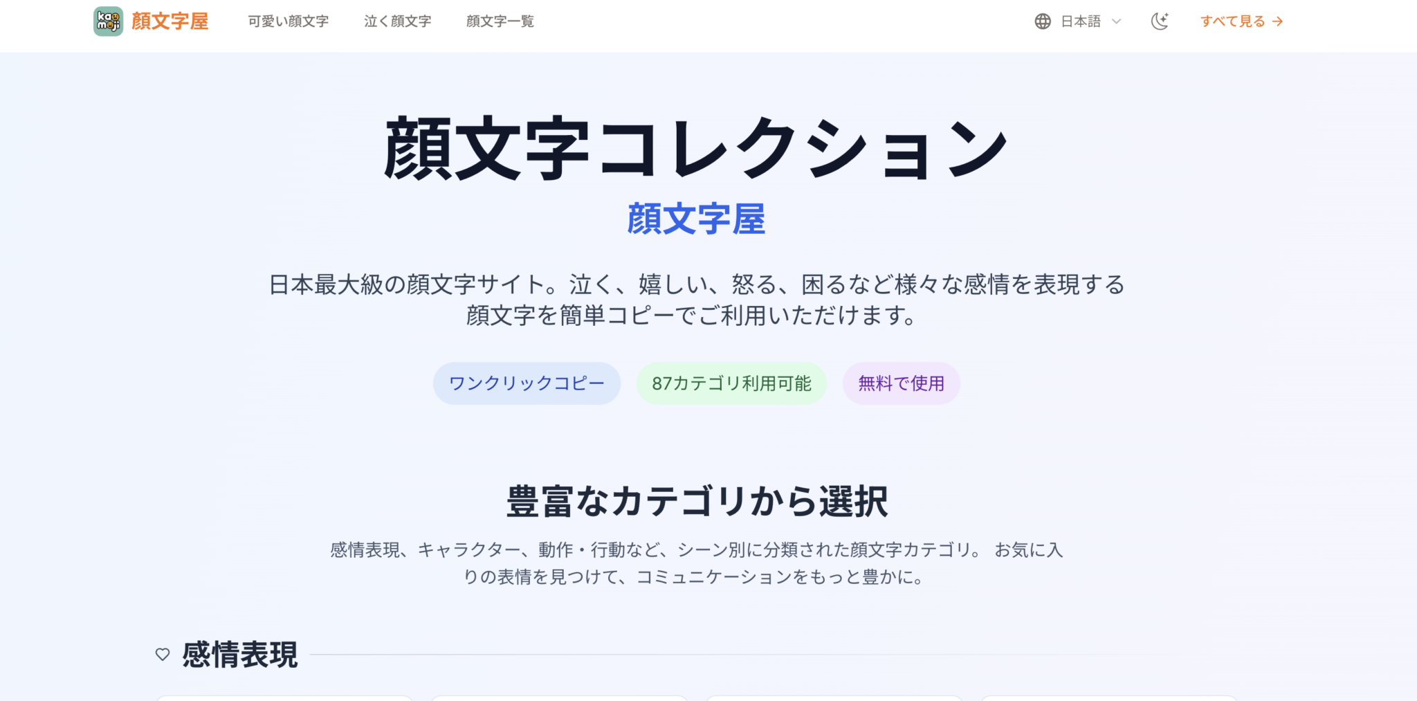 Kaomojiya est une plateforme web consacrée aux kaomoji, l’art traditionnel japonais des émoticônes en caractères ASCII. Ces expressions visuelles uniques capturent les émotions humaines avec une élégance toute particulière.