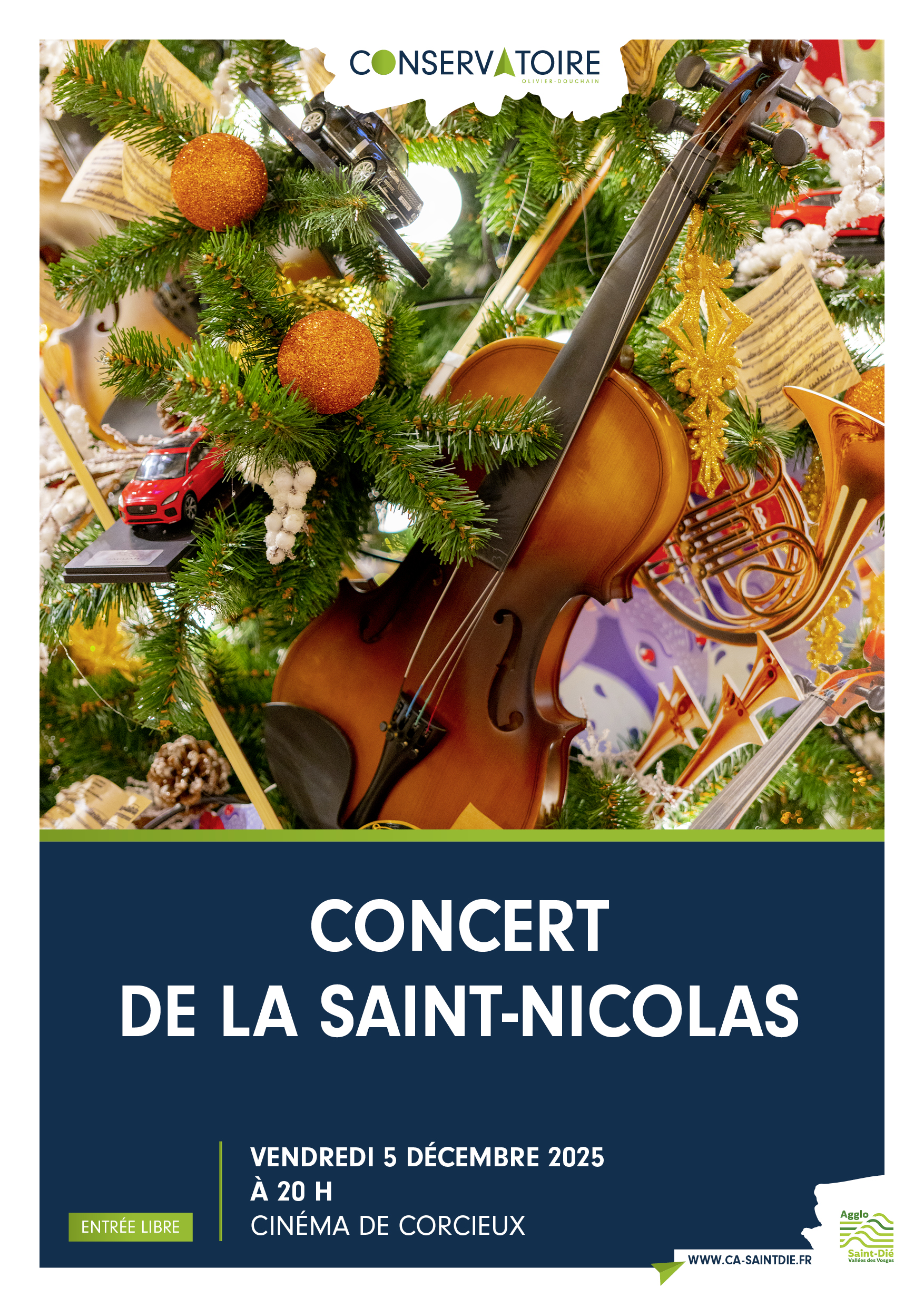 Le conservatoire vous propose un concert de la Saint-Nicolas coordonné par Sébastien Perrin, 20h, cinéma de Corcieux, entrée libre