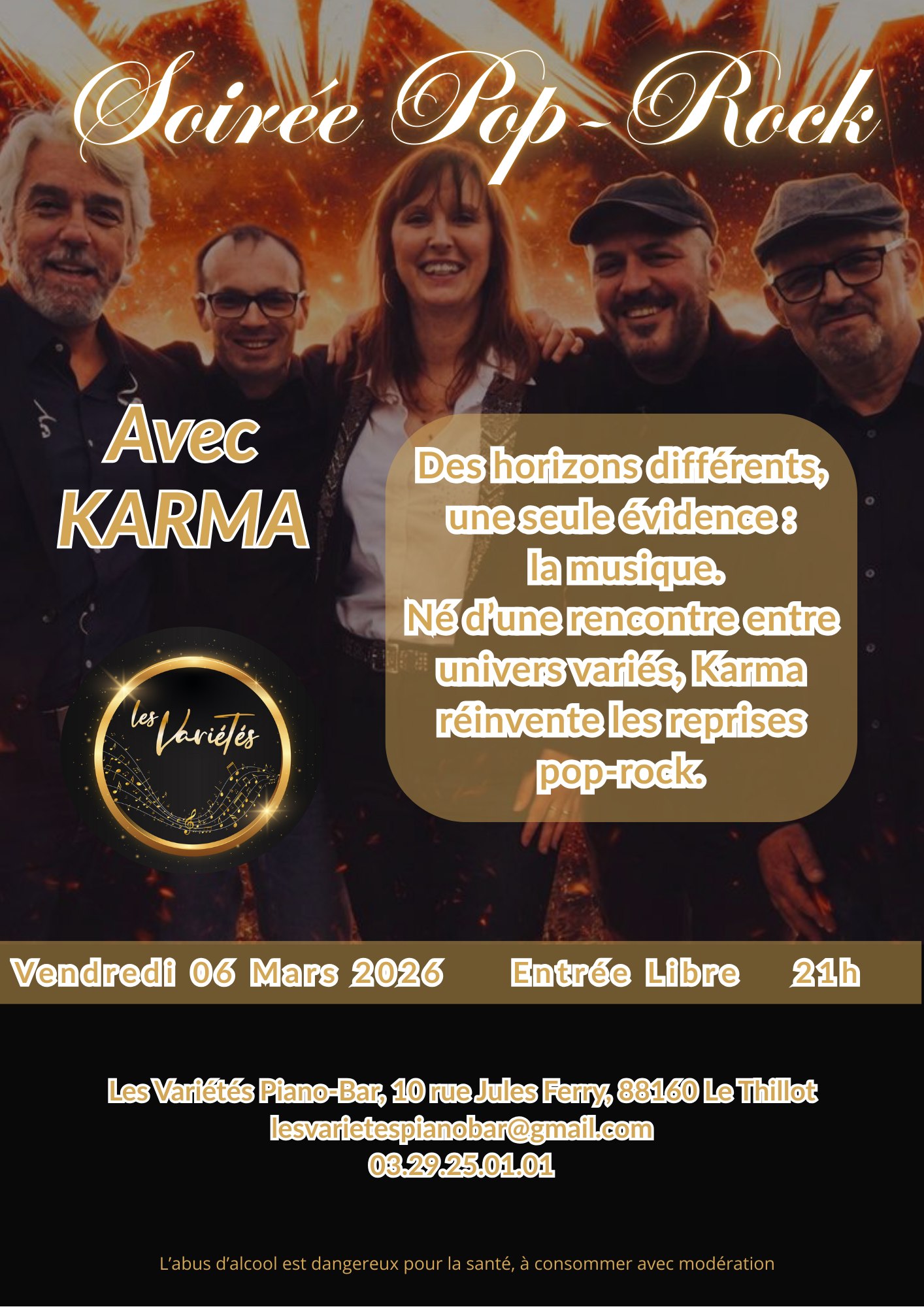Originaire de Fresse sur Moselle, le groupe « Karma » jouera son tout premier concertde reprises originales ce vendredi aux Variétés Piano Bar Le Thillot !