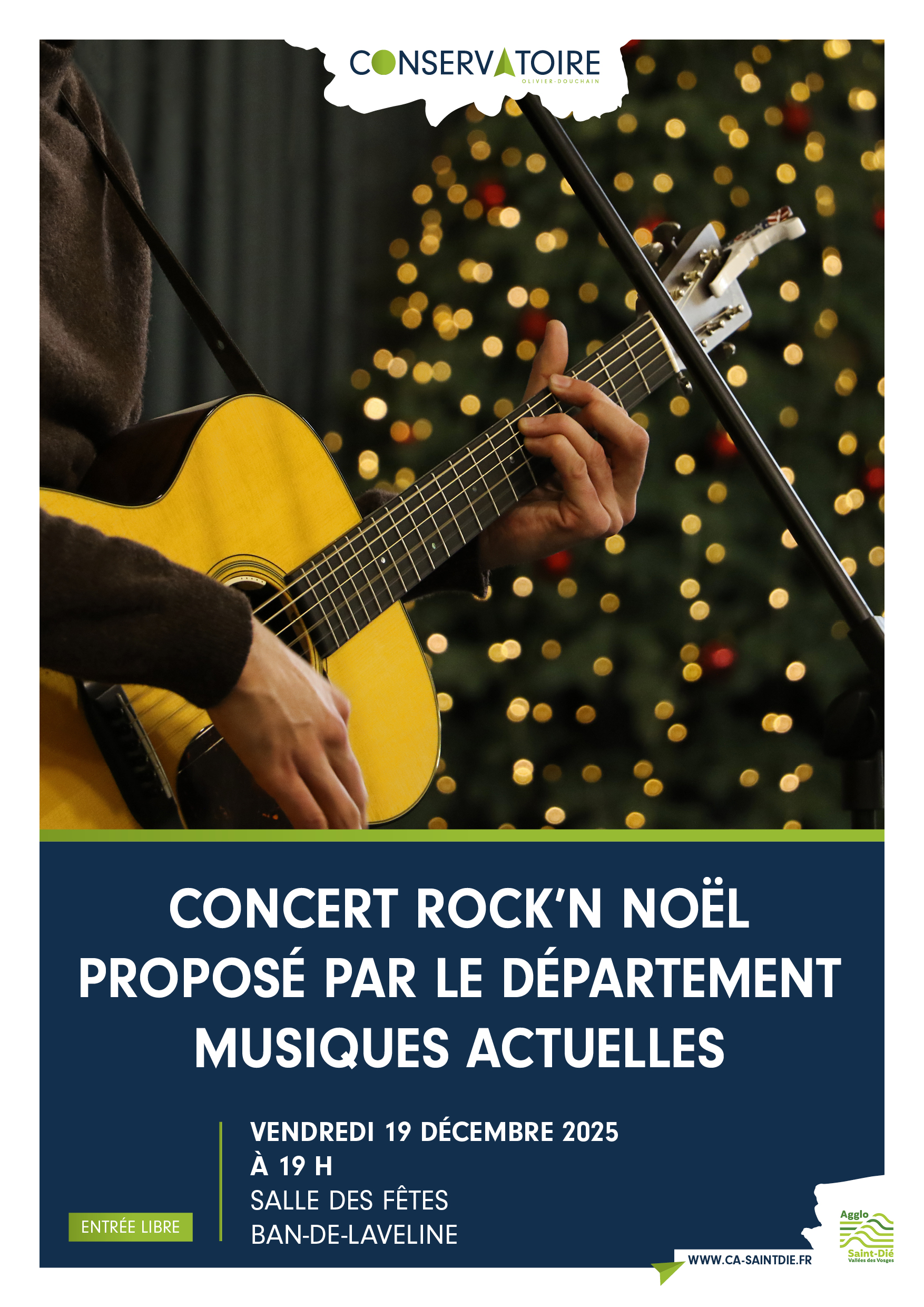 Le conservatoire vous invite à son concert rock’n Noël organisé par le département musiques actuelles, vendredi 19 décembre à 19h, salle des fêtes de Ban-de-Laveline, entrée libre