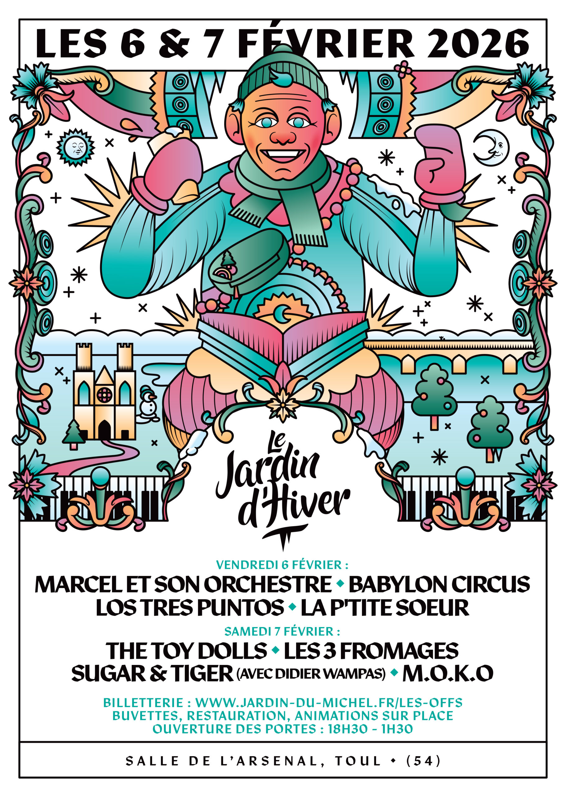Au cœur de l’hiver, mains froides et joues rouges, à l’image de notre Michel qui a revêtu son manteau d’hiver, on vous donne rendez-vous pour contrer la grisaille et réchauffer les cœurs. Le Jardin d’Hiver, qui s’étale cette année sur deux soirées, devient une bulle vivante où la joie n’est pas là par hasard et où le punk flirte avec poésie et humour.