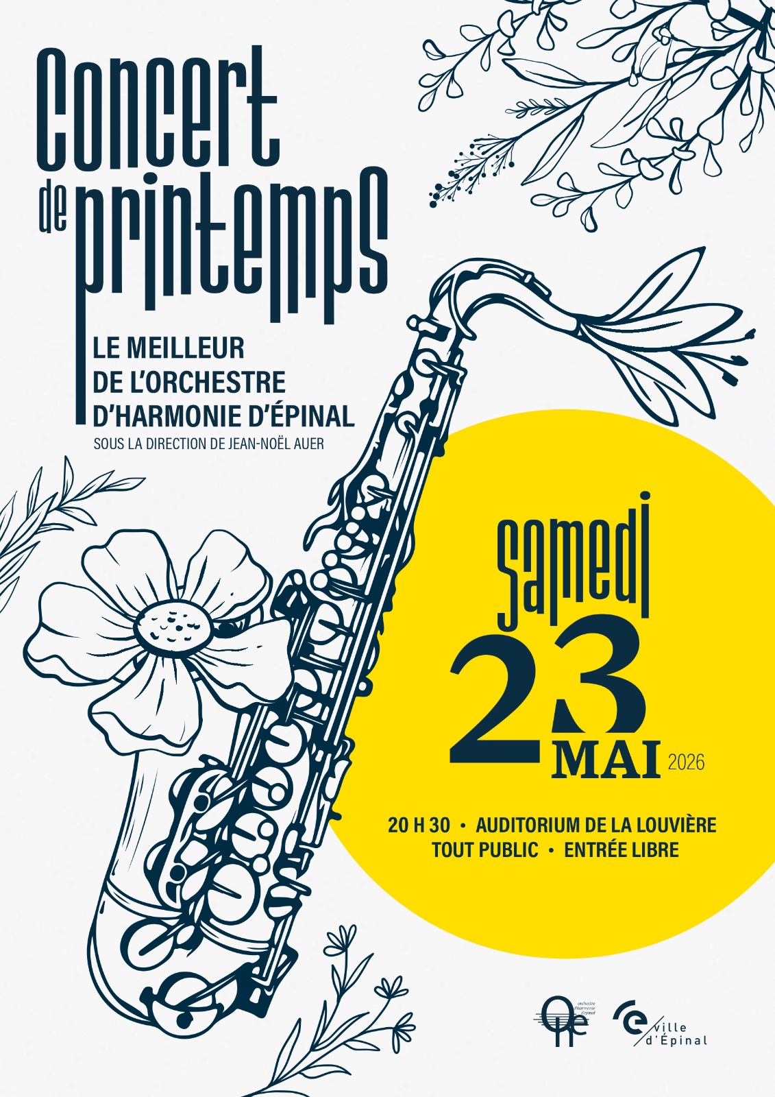 L'Orchestre d'Harmonie d'Epinal, c'est un peu plus d'une soixantaine de musiciens actuellement dirigés par Jean Noël AUER, digne successeur de Jean Paul CLAVEL et Jacques ODASSO, eux-mêmes successeurs de Daniel CHOPINEZ, et encadrés par 7 chefs de pupitres, tous professionnels et pour la plupart professeurs au Conservatoire Gautier d'Epinal.