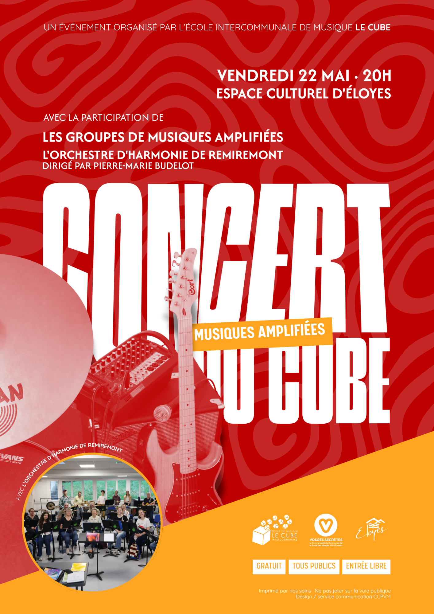 Le vendredi 22 mai à 20h, l’espace culturel d’Éloyes vibrera au son des musiques amplifiées du Cube. Cet événement, prévu depuis longtemps, réunira plusieurs partenaires talentueux, illustrant le dynamisme et la vitalité de notre territoire. Ce concert promet d’être un moment fort du mois, où énergie et passion seront au rendez-vous.