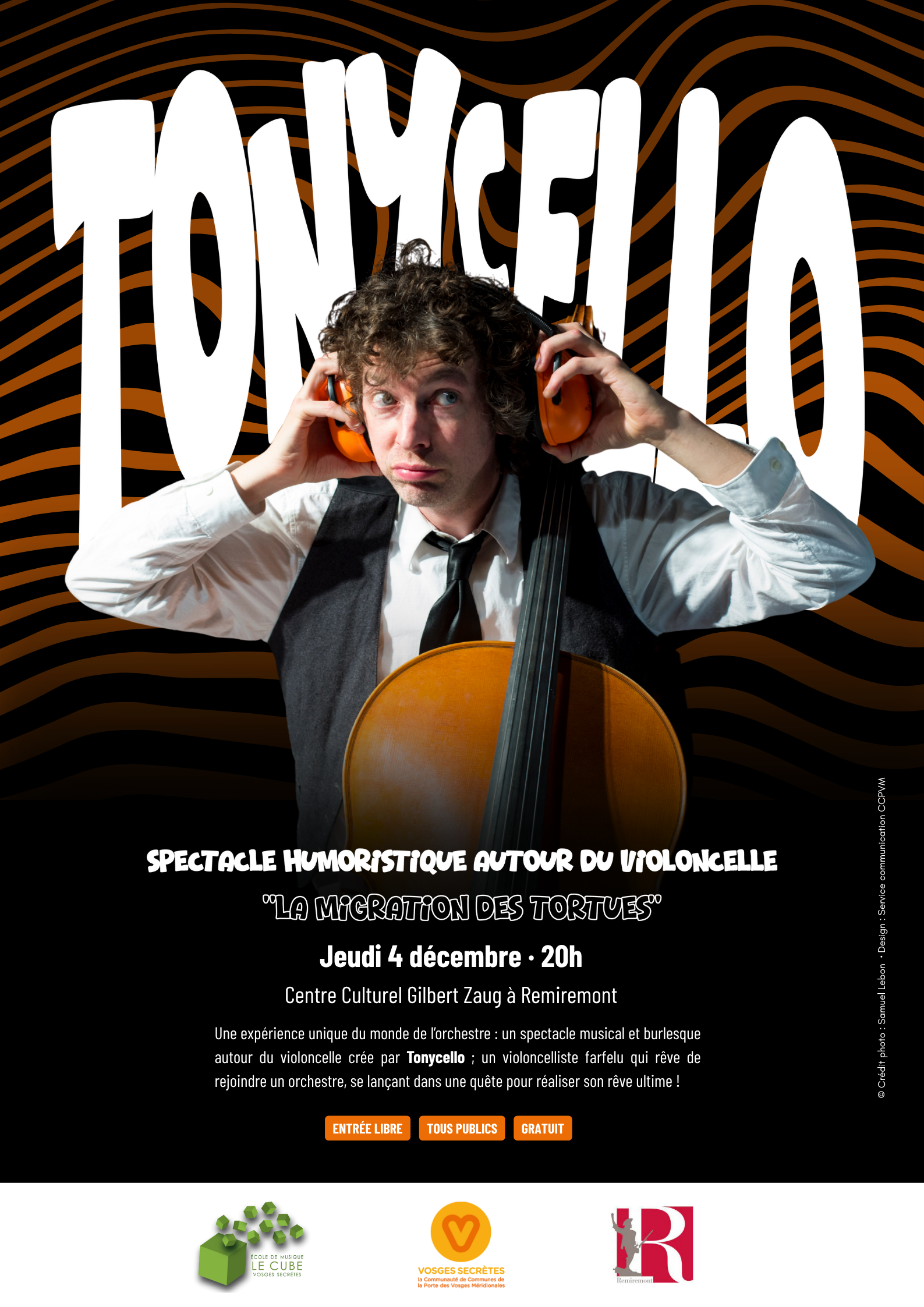 Une expérience unique du monde de l’orchestre : un spectacle musical et burlesque autour du violoncelle créé par Tonycello ; un violoncelliste farfelu qui rêve de rejoindre un orchestre, se lançant dans une quête pour réaliser son rêve ultime.