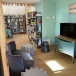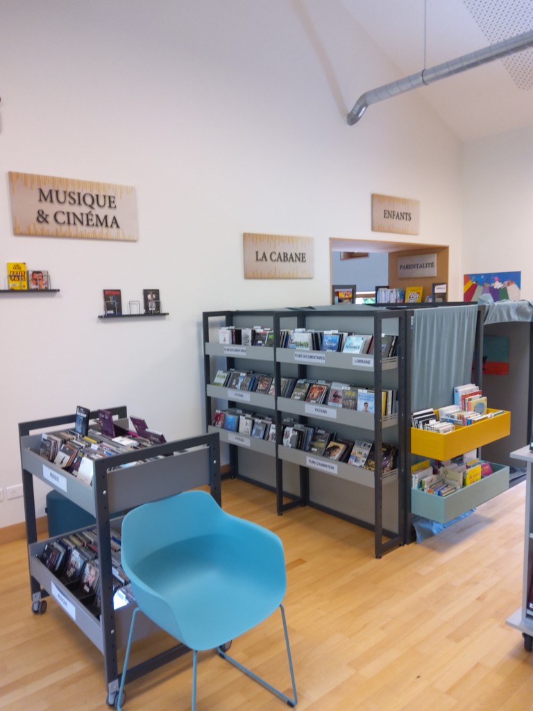 Un choix de romans, documentaires, BD, magazines, musiques et films est proposé autour de mobiliers adaptés.